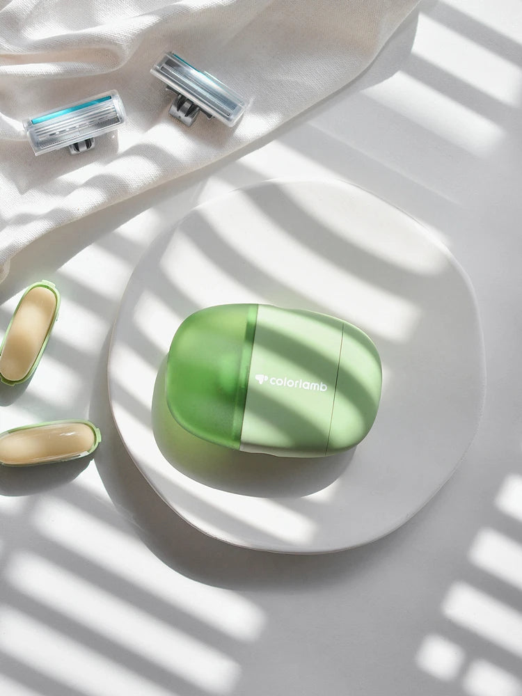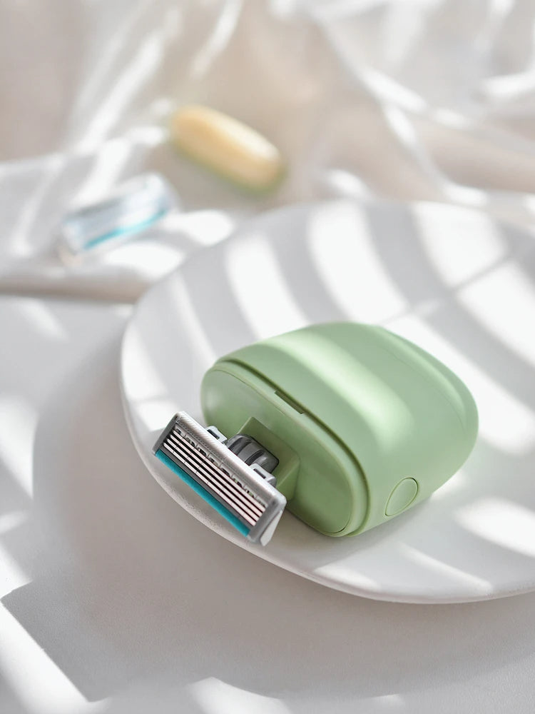 🌟Уникален и удобен дизайн. Кръглите бутони от двете страни на дръжката правят смяната на острието бърза и лесна. Отворите от двете страни на капака поддържат самобръсначката суха и проветрива.